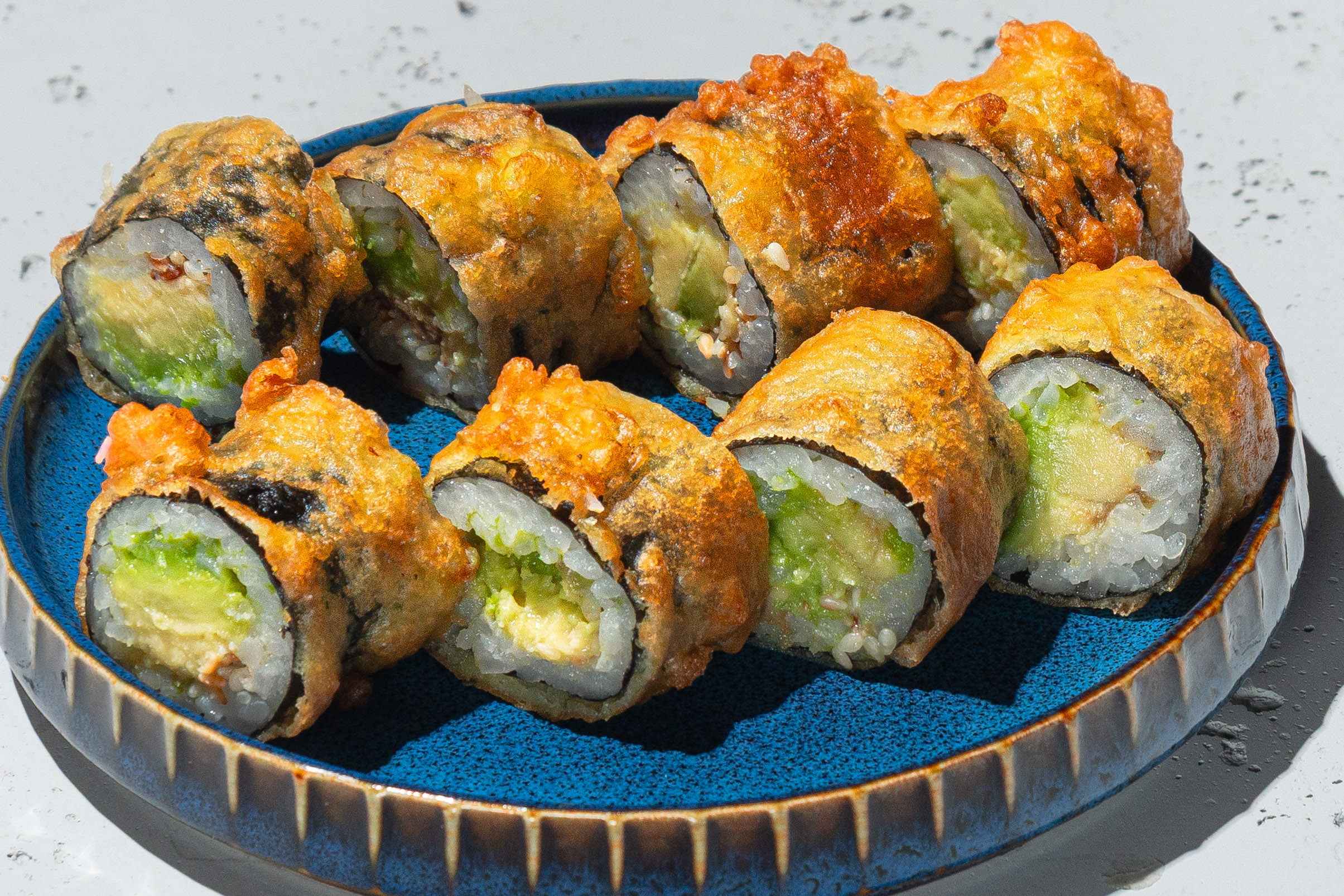 Ilość sztuk: 8 Składniki: awokado, ryż, glony nori – cała rolka w tempurze