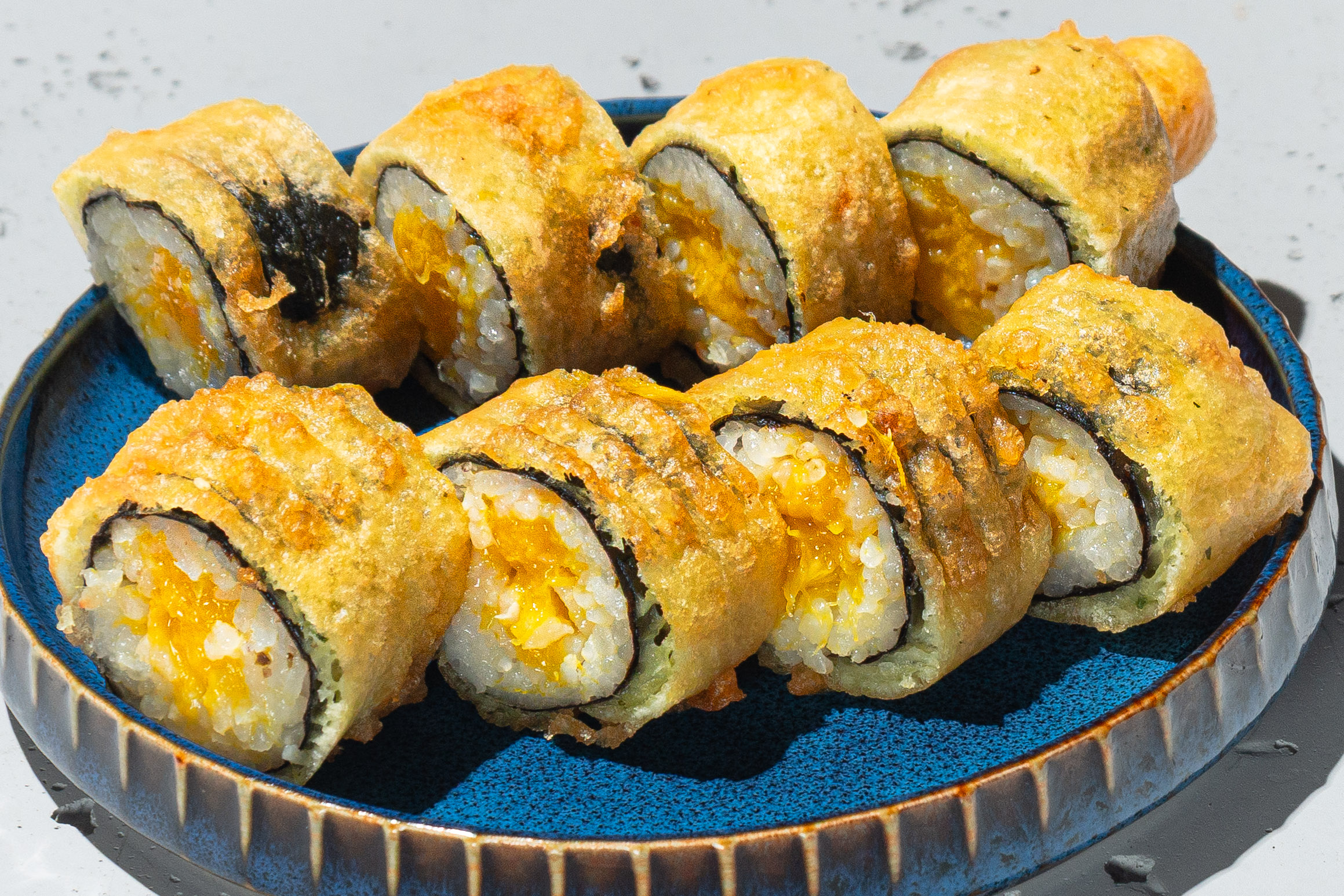 Ilość sztuk: 8 Składniki: mango, ryż, glony nori – cała rolka w tempurze