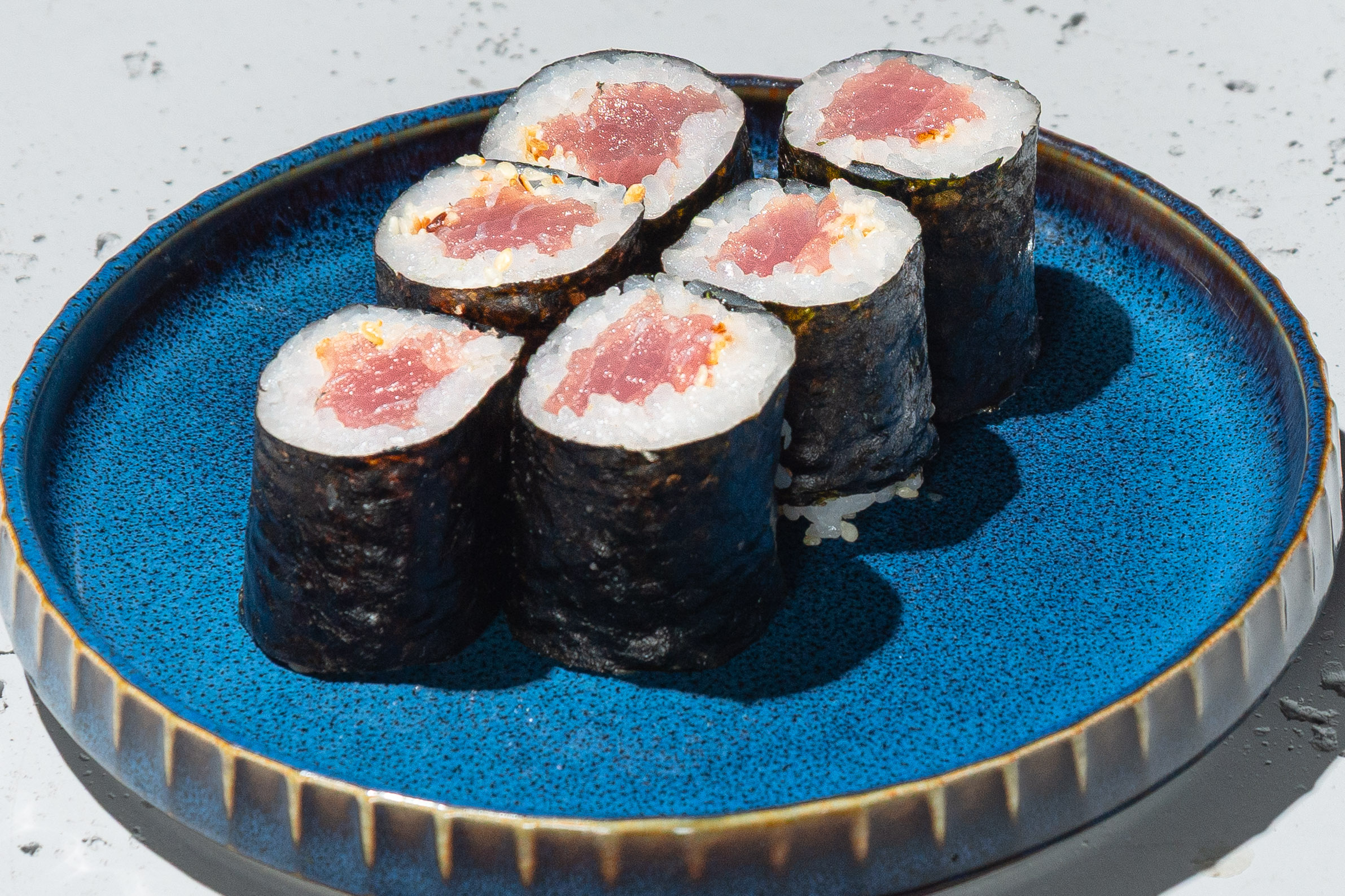 Ilość sztuk: 6 Składniki: tuńczyk surowy, ryż, glony nori